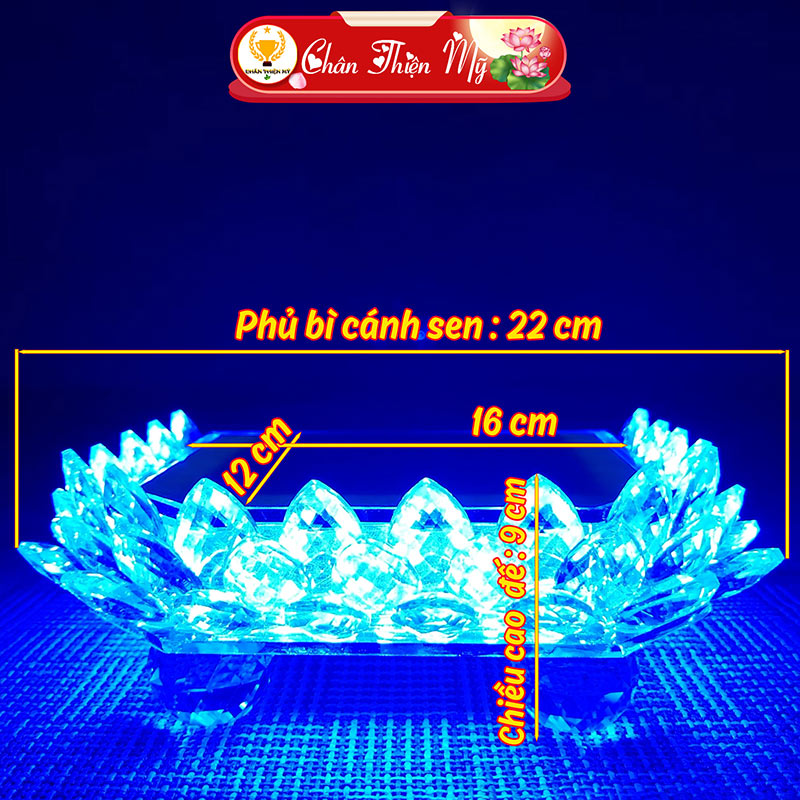 + 12cm x 16cm x 9cm (Tính phủ bì cả cánh sen 15cm x 22cm x 9cm)
