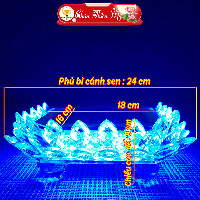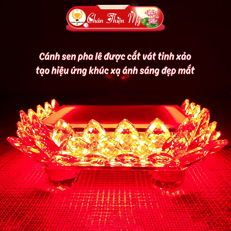 - Phần cánh sen được làm từ pha lê cao cấp, được cắt vát tinh xảo tạo nên hiệu ứng khúc xạ ánh sáng đẹp mắt.
