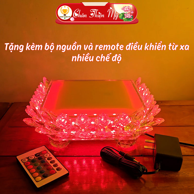 - Đài sen có thể đổi màu ánh sáng từ tĩnh sang động và ngược lại bằng remote điều khiển từ xa nhiều chế độ, tùy theo ý muốn của gia chủ.