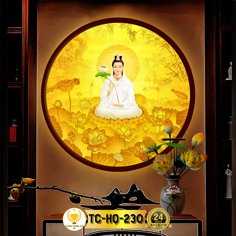 Đèn Bàn Thờ Hoa Sen Đại Thế Chí Bồ Tát In Tranh Trúc Chỉ CHÂN THIỆN MỸ, Trang Trí Bàn Thờ Phật, Treo Phòng Thờ TC-HQ-230