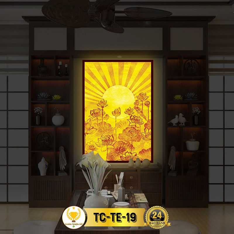 - Bề mặt tranh: Được in bằng công nghệ Nhật Bản trên tấm film dẫn sáng của Hàn Quốc tạo nên ánh sáng chan hòa đều khắp mặt tranh. Bề mặt tranh được phủ thêm một lớp ánh kim 5D chống bay màu, không bám bẩn, khi không bật đèn kim sa lấp lánh, tạo nên sự sang trọng và đẳng cấp cho sản phẩm.