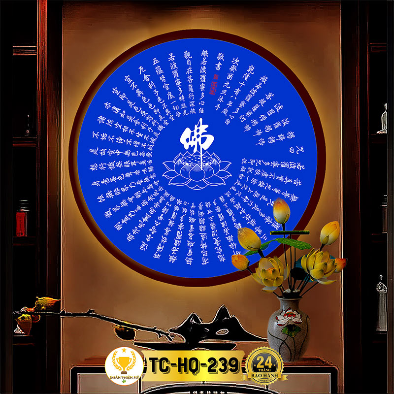 Đèn Hào Quang Bát Nhã Tâm Kinh In Tranh Trúc Chỉ CHÂN THIỆN MỸ, Trang Trí Bàn Thờ Phật, Treo Phòng Thờ TC-HQ-239