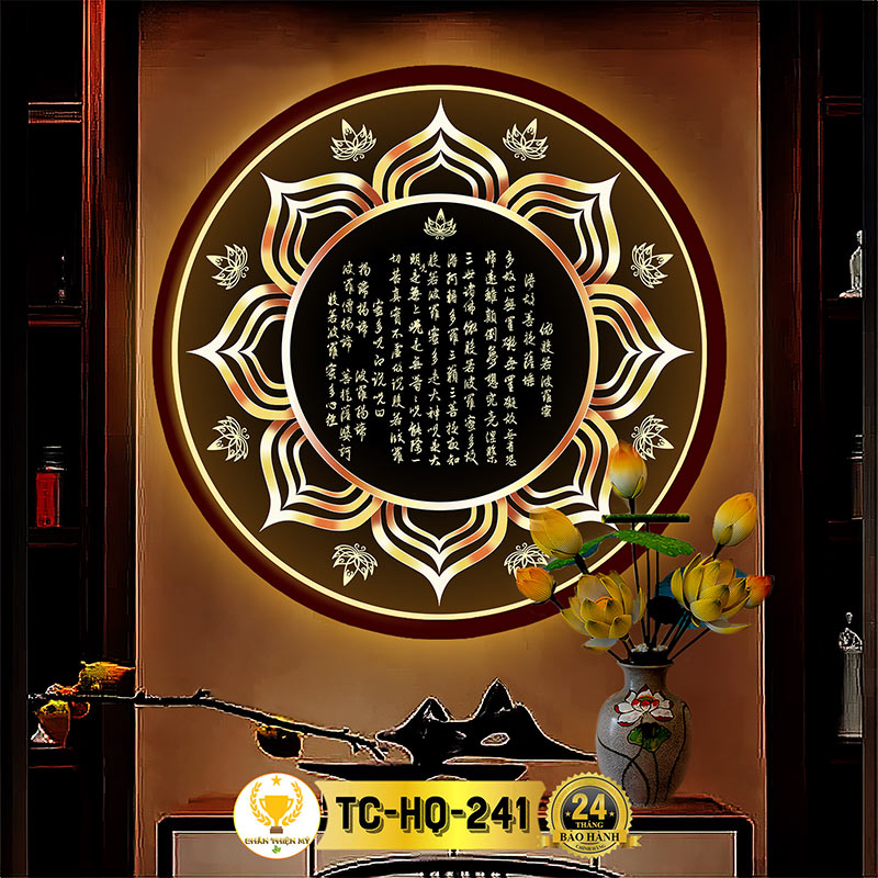 Đèn Hào Quang Bát Nhã Tâm Kinh In Tranh Trúc Chỉ CHÂN THIỆN MỸ, Trang Trí Bàn Thờ Phật, Treo Phòng Thờ TC-HQ-241