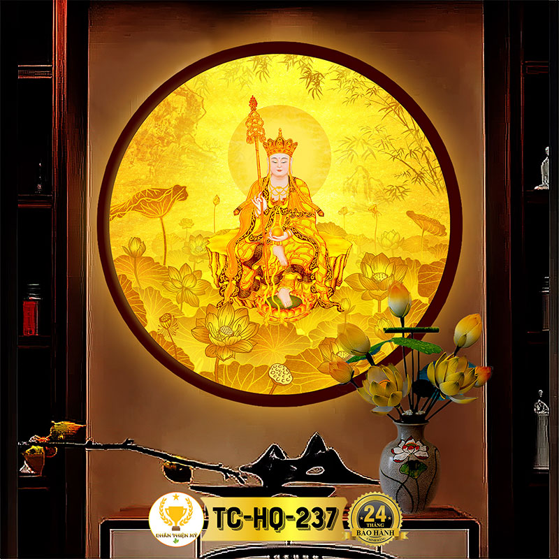Đèn Hào Quang Địa Tạng Vương Bồ Tát In Tranh Trúc Chỉ CHÂN THIỆN MỸ, Trang Trí Bàn Thờ Cùng Tượng Phật TC-HQ-237