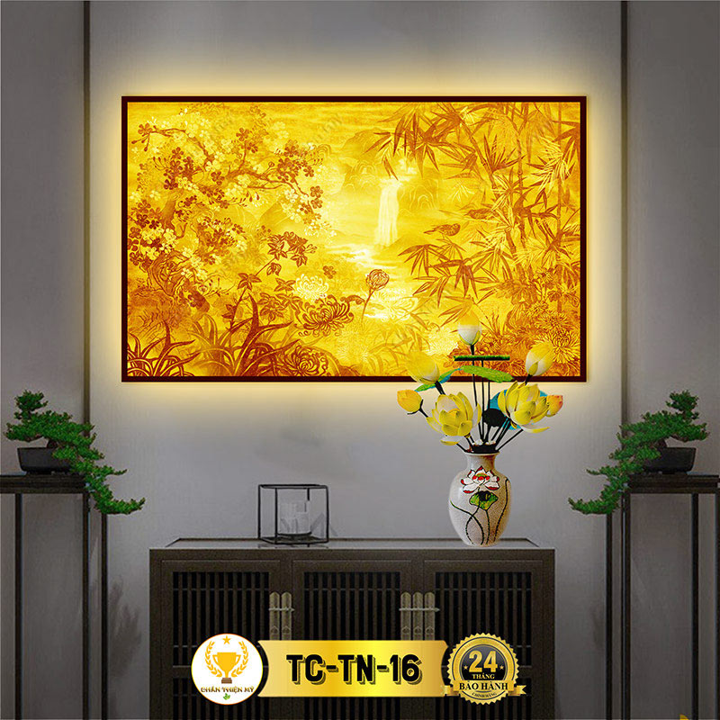 Đèn Hào Quang Hoa Mai Cây Trúc In Tranh Trúc Chỉ Ngang CHÂN THIỆN MỸ, Trang Trí Phòng Thờ, Bàn Thờ Treo Tường TC-TN-16