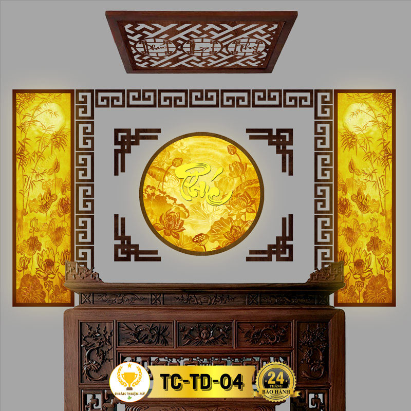 Đèn Hào Quang Hoa Sen Cây Trúc In Tranh Trúc Chỉ Bộ Đôi CHÂN THIỆN MỸ, Trang Trí Bàn Thờ, Trang Thờ Treo Tường TC-TD-04