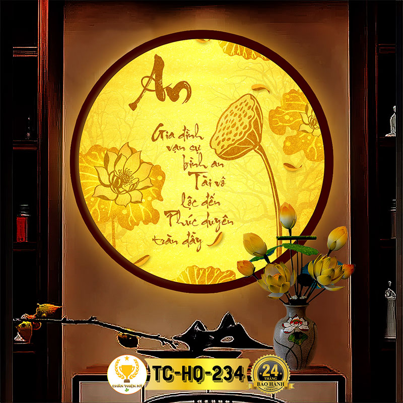 Đèn Hào Quang Hoa Sen Chữ An In Tranh Trúc Chỉ CHÂN THIỆN MỸ, Trang Trí Bàn Thờ Gia Tiên, Treo Tượng Phật TC-HQ-234