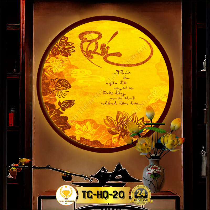Đèn Hào Quang Hoa Sen Chữ Phúc In Tranh Trúc Chỉ CHÂN THIỆN MỸ, Trang Trí Bàn Thờ Gia Tiên, Treo Tượng Phật TC-HQ-20