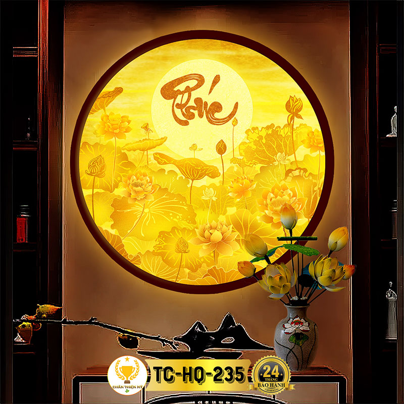Đèn Hào Quang Hoa Sen Chữ Phúc In Tranh Trúc Chỉ CHÂN THIỆN MỸ, Trang Trí Bàn Thờ Gia Tiên, Treo Tượng Phật TC-HQ-235