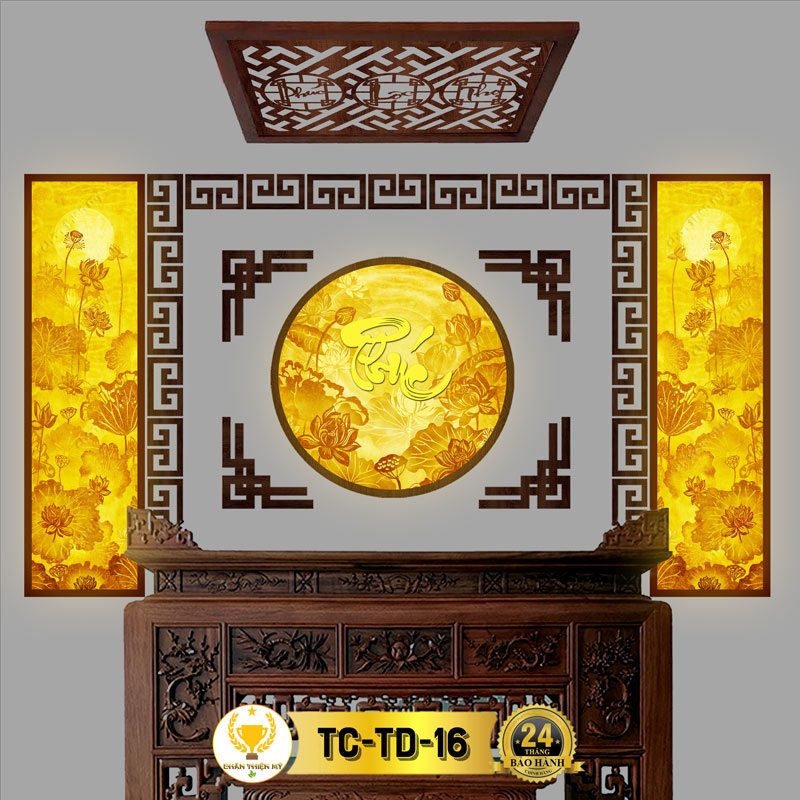 Đèn Hào Quang Hoa Sen In Tranh Trúc Chỉ Bộ Đôi CHÂN THIỆN MỸ, Trang Trí Bàn Thờ, Trang Thờ Treo Tường TC-TD-16