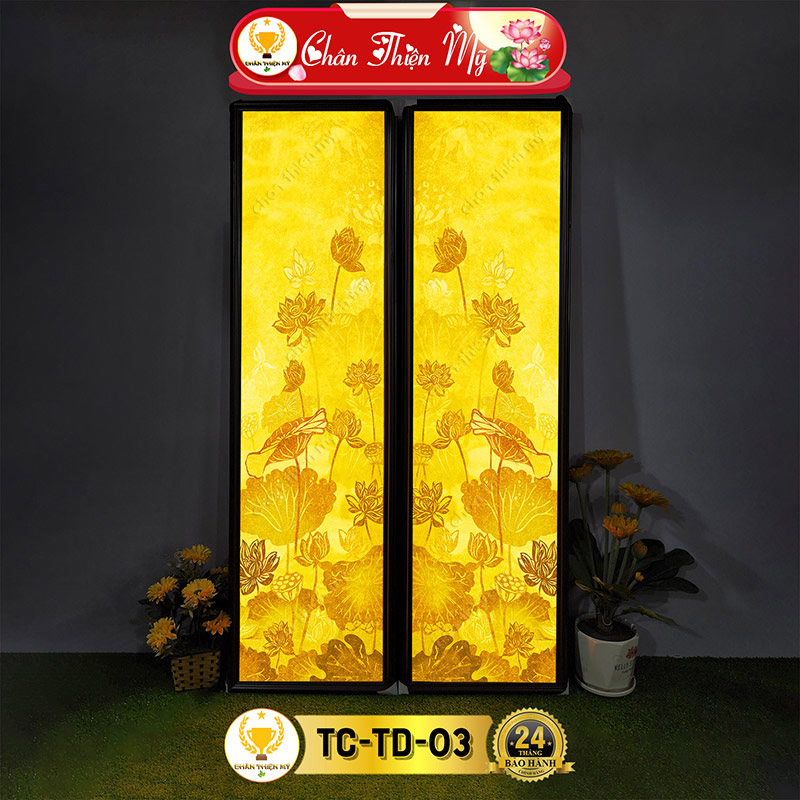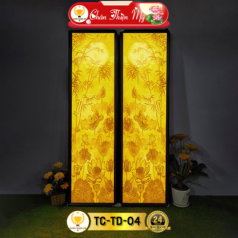 Đèn Hào Quang Hoa Sen In Tranh Trúc Chỉ Bộ Đôi CHÂN THIỆN MỸ, Trang Trí Phòng Thờ, Bàn Thờ Treo Tường TC-TD-02