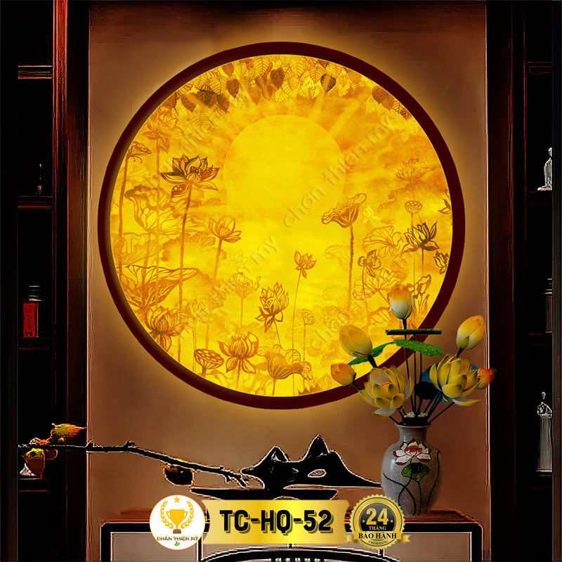 Đèn Hào Quang Hoa Sen In Tranh Trúc Chỉ CHÂN THIỆN MỸ, Trang Trí Bàn Thờ Gia Tiên, Treo Tượng Phật TC-HQ-52