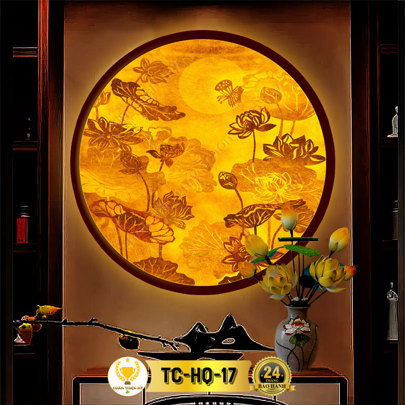 Đèn Hào Quang Hoa Sen In Tranh Trúc Chỉ CHÂN THIỆN MỸ, Tranh Treo Phòng Thờ, Trang Trí Tượng Phật TC-HQ-17