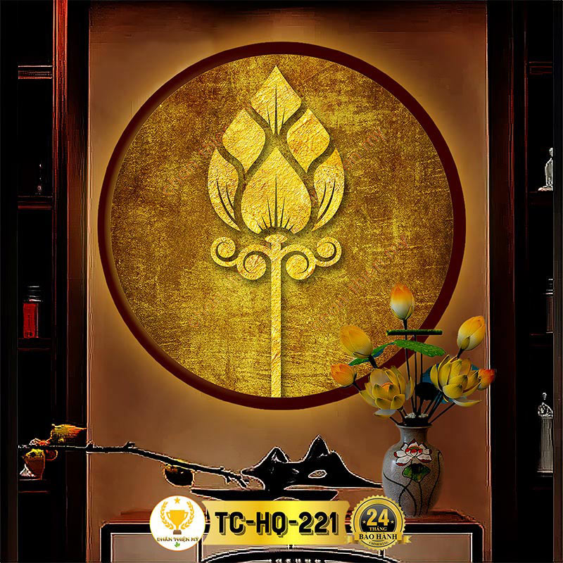 Đèn Hào Quang Hoa Sen In Tranh Trúc Chỉ CHÂN THIỆN MỸ, Tranh Treo Phòng Thờ, Trang Trí Tượng Phật TC-HQ-221