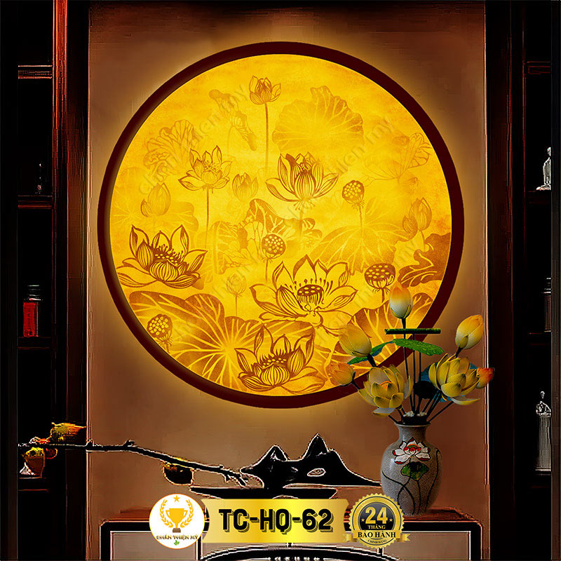 Đèn Hào Quang Hoa Sen In Tranh Trúc Chỉ CHÂN THIỆN MỸ, Tranh Treo Phòng Thờ, Trang Trí Tượng Phật TC-HQ-62