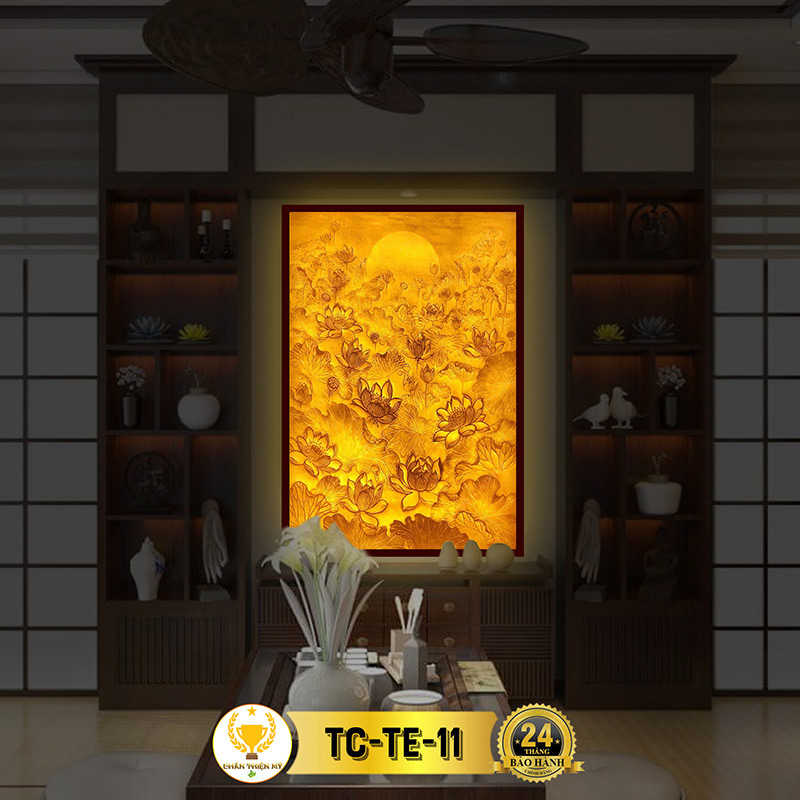- Bề mặt tranh: Được in bằng công nghệ Nhật Bản trên tấm film dẫn sáng của Hàn Quốc tạo nên ánh sáng chan hòa đều khắp mặt tranh. Bề mặt tranh được phủ thêm một lớp ánh kim 5D chống bay màu, không bám bẩn, khi không bật đèn kim sa lấp lánh, tạo nên sự sang trọng và đẳng cấp cho sản phẩm.