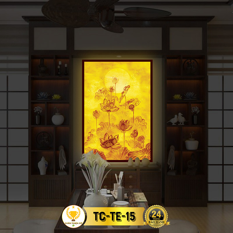 - Bề mặt tranh: Được in bằng công nghệ Nhật Bản trên tấm film dẫn sáng của Hàn Quốc tạo nên ánh sáng chan hòa đều khắp mặt tranh. Bề mặt tranh được phủ thêm một lớp ánh kim 5D chống bay màu, không bám bẩn, khi không bật đèn kim sa lấp lánh, tạo nên sự sang trọng và đẳng cấp cho sản phẩm.