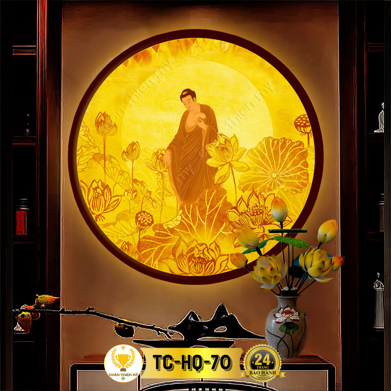 Đèn Hào Quang Phật A Di Đà In Tranh Trúc Chỉ CHÂN THIỆN MỸ, Trang Trí Bàn Thờ Cùng Tượng Phật TC-HQ-70