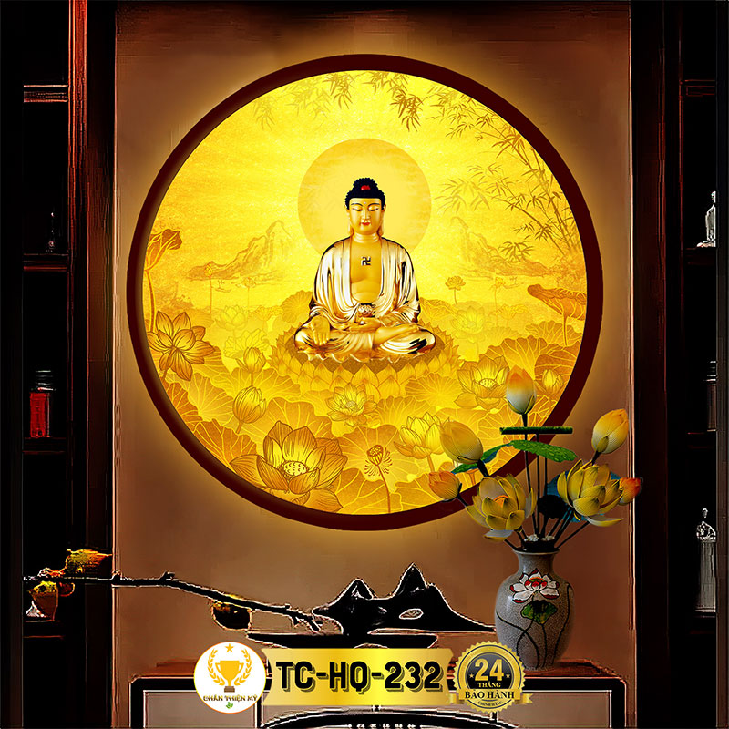 Đèn Hào Quang Phật A Di Đà In Tranh Trúc Chỉ CHÂN THIỆN MỸ, Trang Trí Bàn Thờ Treo Tường Cùng Tượng Phật TC-HQ-232