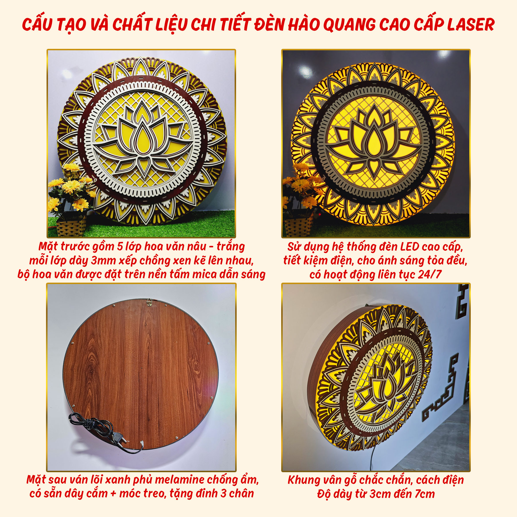 Đèn Hào Quang Phật Chữ Thọ Cao Cấp Bằng Gỗ Cắt Laser 5D CHÂN THIỆN MỸ, Trang Trí Phòng Thờ, Tượng Phật Dược Sư LS-HQ-06