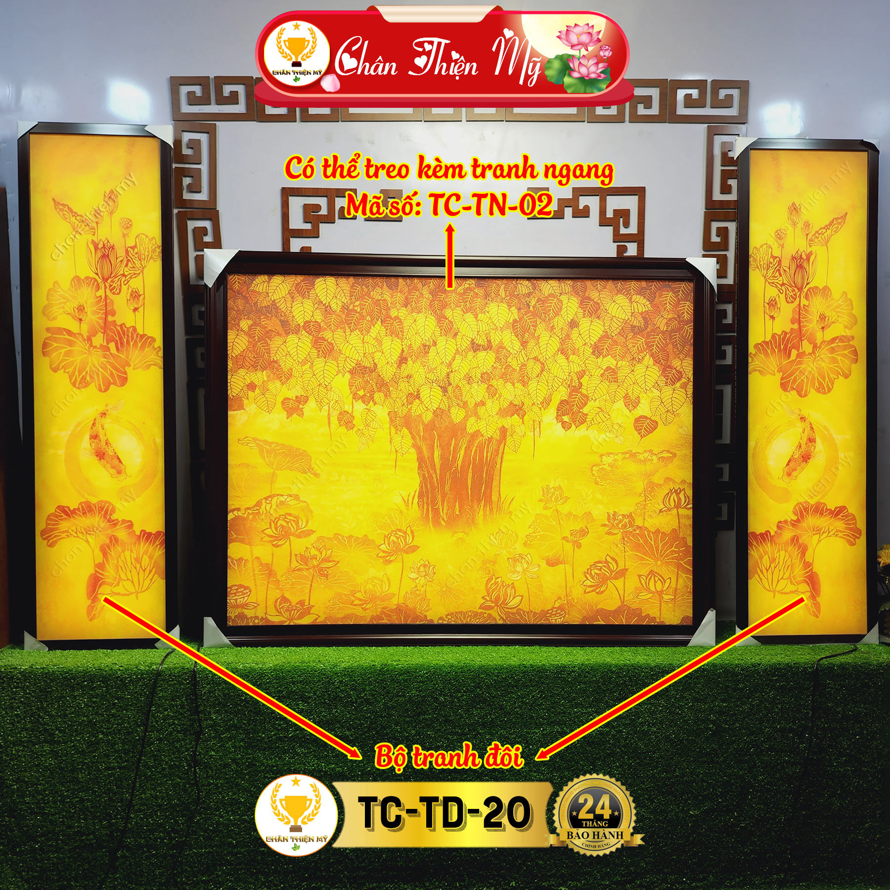 Đèn Hào Quang Phật Hoa Sen Câu Đối In Tranh Trúc Chỉ Bộ Đôi CHÂN THIỆN MỸ, Trang Trí Bàn Thờ, Treo Phòng Thờ TC-TD-44