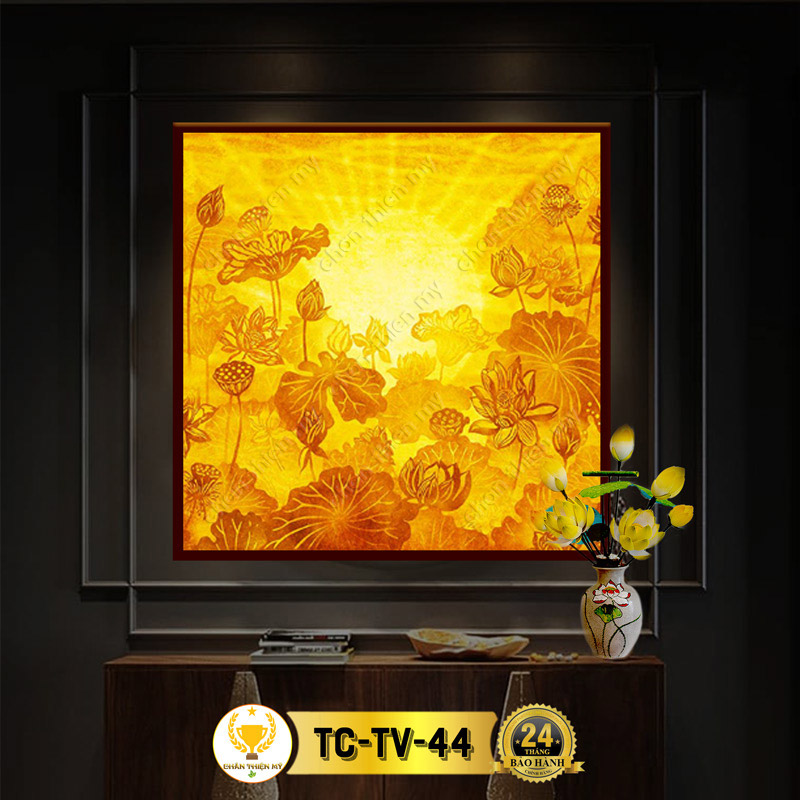 Đèn Hào Quang Phật Hoa Sen In Tranh Trúc Chỉ Vuông CHÂN THIỆN MỸ, Trang Trí Phòng Thờ, Bàn Thờ Phật TC-TV-44