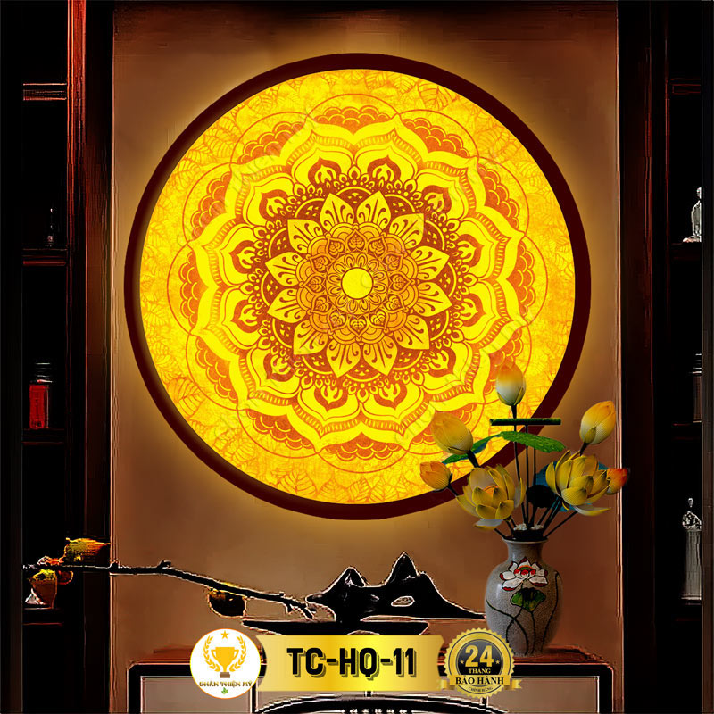 Đèn Hào Quang Phật In Tranh Trúc Chỉ Mandala CHÂN THIỆN MỸ, Trang Trí Bàn Thờ Gia Tiên, Treo Tượng Phật TC-HQ-11