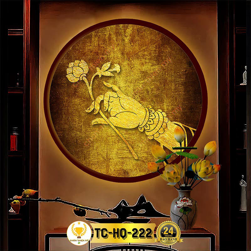 Đèn Hào Quang Phật In Tranh Trúc Chỉ Tay Phật Cầm Hoa Sen CHÂN THIỆN MỸ, Trang Trí Bàn Thờ, Treo Tượng Phật TC-HQ-222