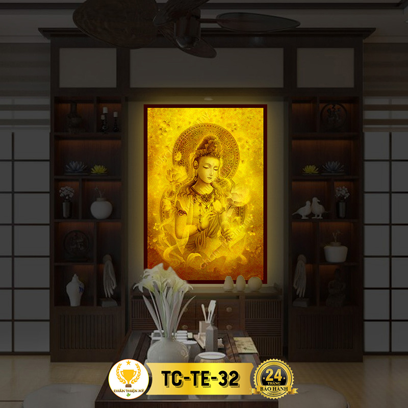 Đèn Hào Quang Phật Quan Âm In Tranh Trúc Chỉ Hoa Sen Dọc CHÂN THIỆN MỸ, Trang Trí Bàn Thờ Phật, Treo Phòng Thờ TC-TE-32