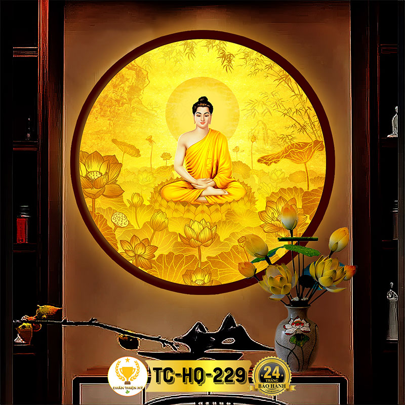 Đèn Hào Quang Phật Thích Ca In Tranh Trúc Chỉ CHÂN THIỆN MỸ, Trang Trí Bàn Thờ Phật, Treo Phòng Thờ TC-HQ-229