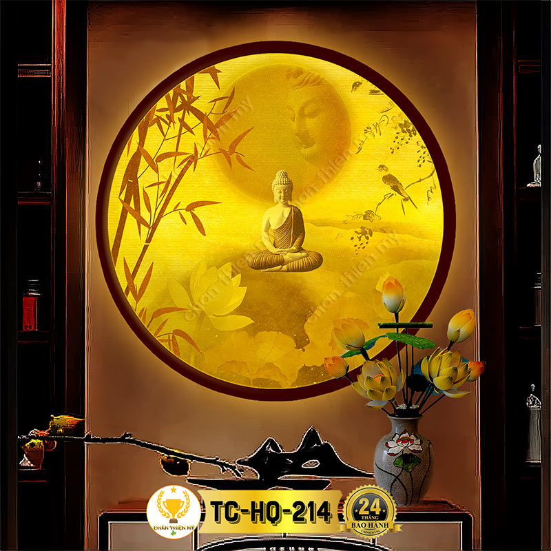 Đèn Hào Quang Phật Thích Ca In Tranh Trúc Chỉ CHÂN THIỆN MỸ, Trang Trí Bàn Thờ Treo Tường Cùng Tượng Phật TC-HQ-214