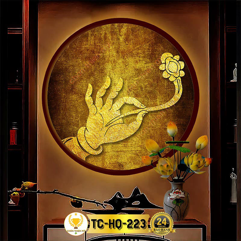 Đèn Hào Quang Tay Phật In Tranh Trúc Chỉ CHÂN THIỆN MỸ, Trang Trí Bàn Thờ Phật, Treo Phòng Thờ TC-HQ-223
