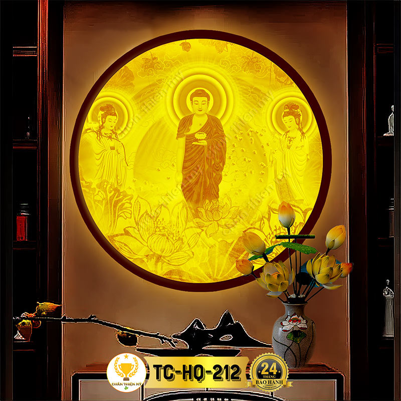 Đèn Hào Quang Tây Phương Tam Thánh In Tranh Trúc Chỉ CHÂN THIỆN MỸ, Trang Trí Bàn Thờ Cùng Tượng Phật TC-HQ-212