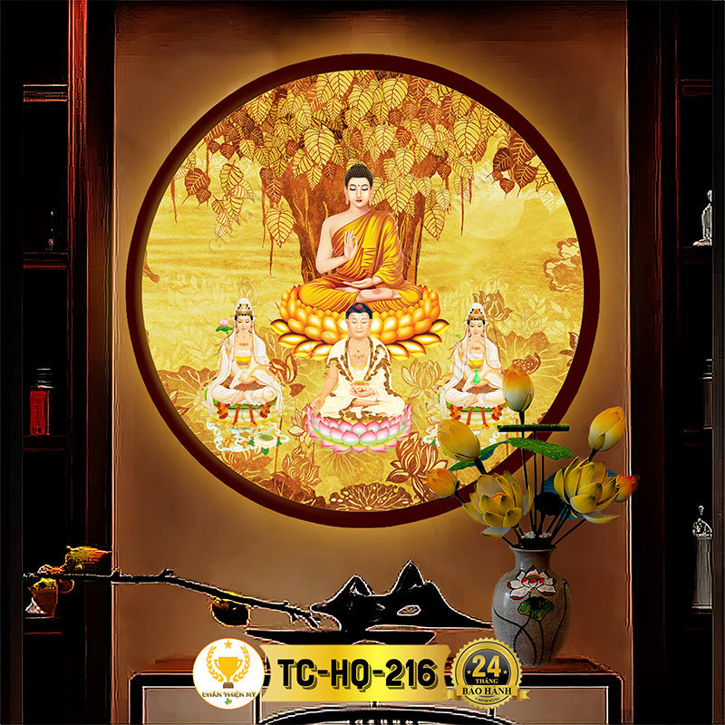 Đèn Hào Quang Tây Phương Tam Thánh In Tranh Trúc Chỉ CHÂN THIỆN MỸ, Trang Trí Bàn Thờ Cùng Tượng Phật TC-HQ-216