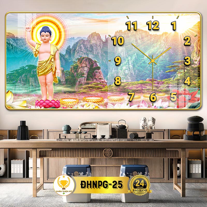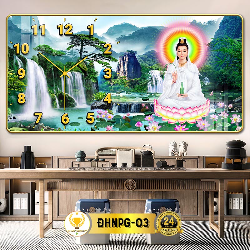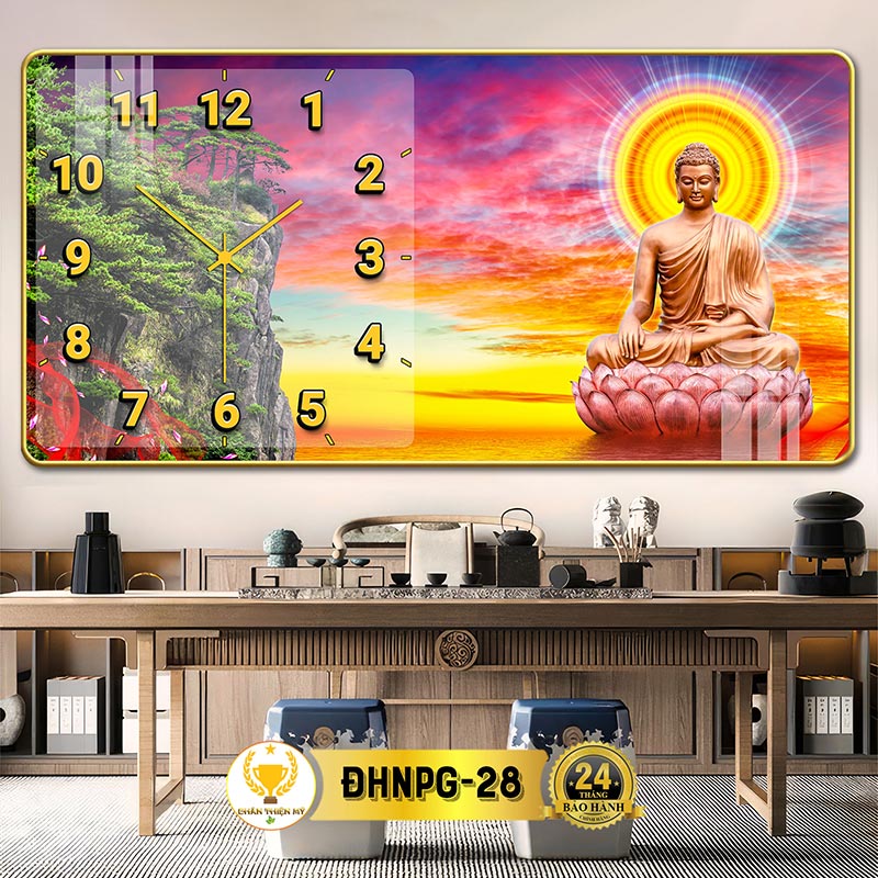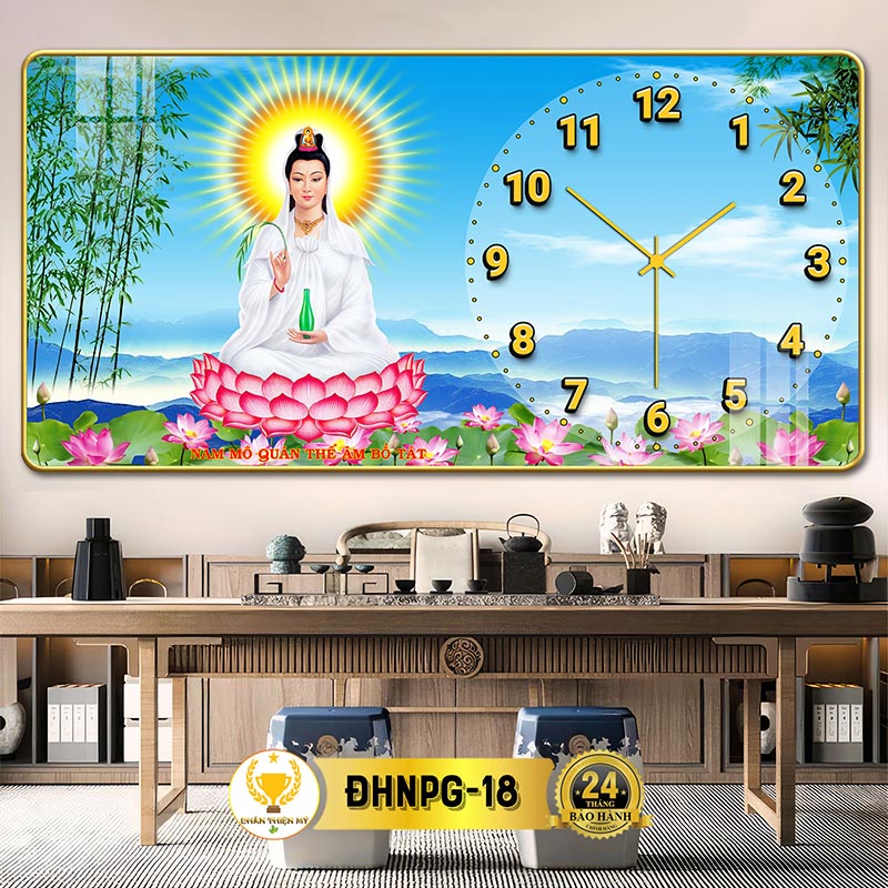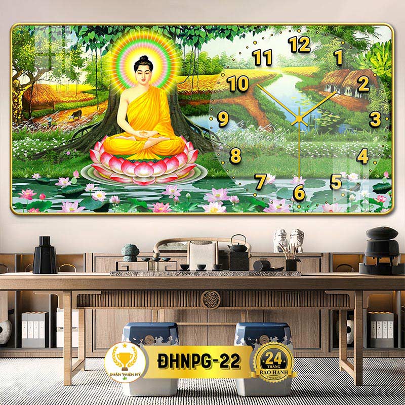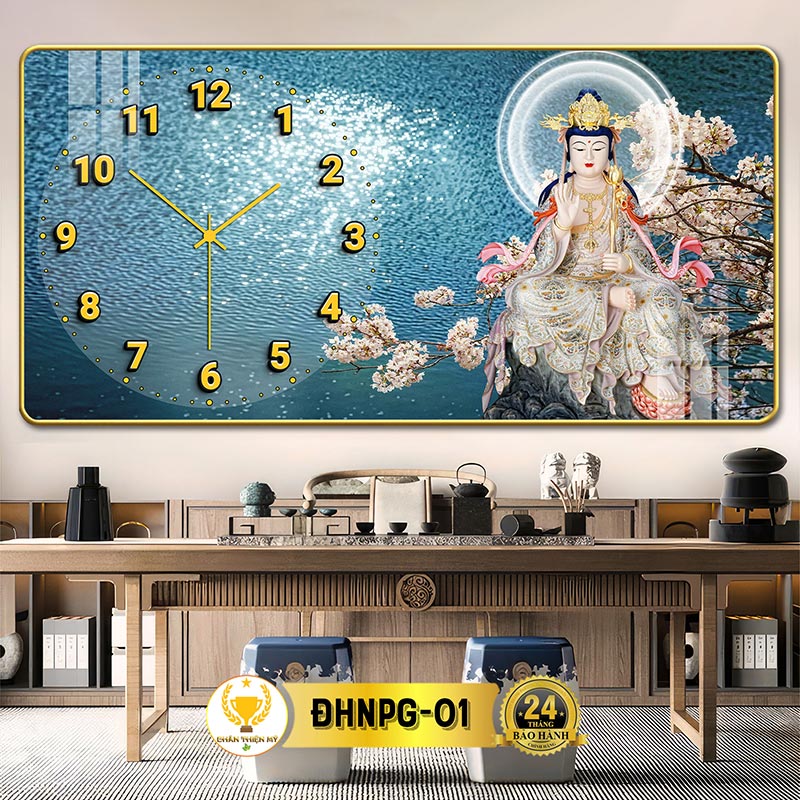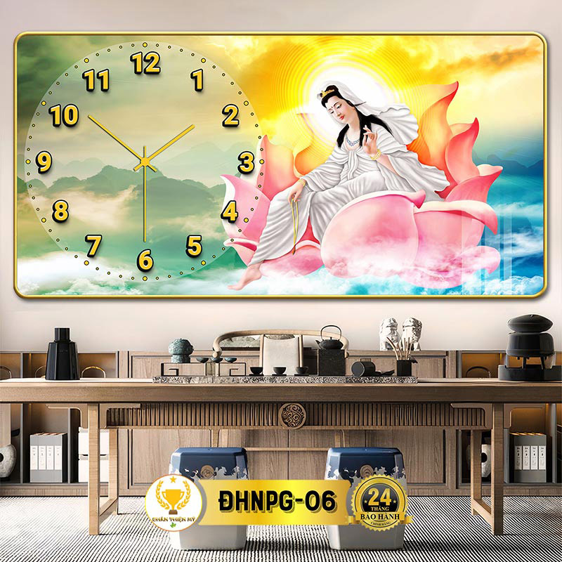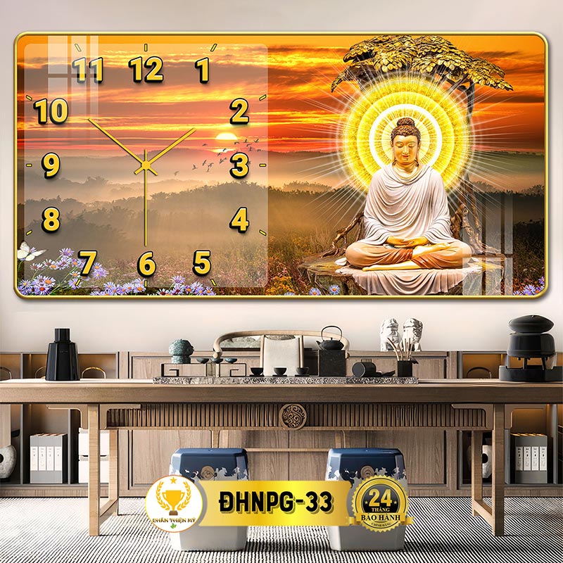 Đồng Hồ Tráng Gương Treo Tường Phật Giáo CHÂN THIỆN MỸ, Làm Quà Tặng Tân Gia, Decor Trang Trí Nhà Cửa CĐHNPG-02