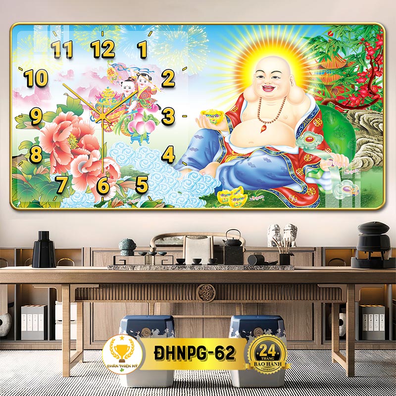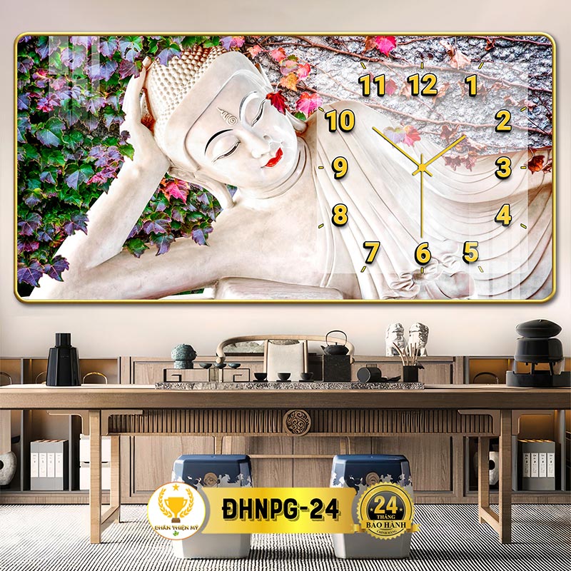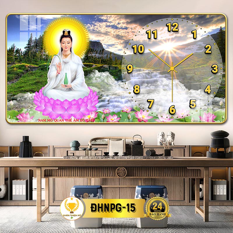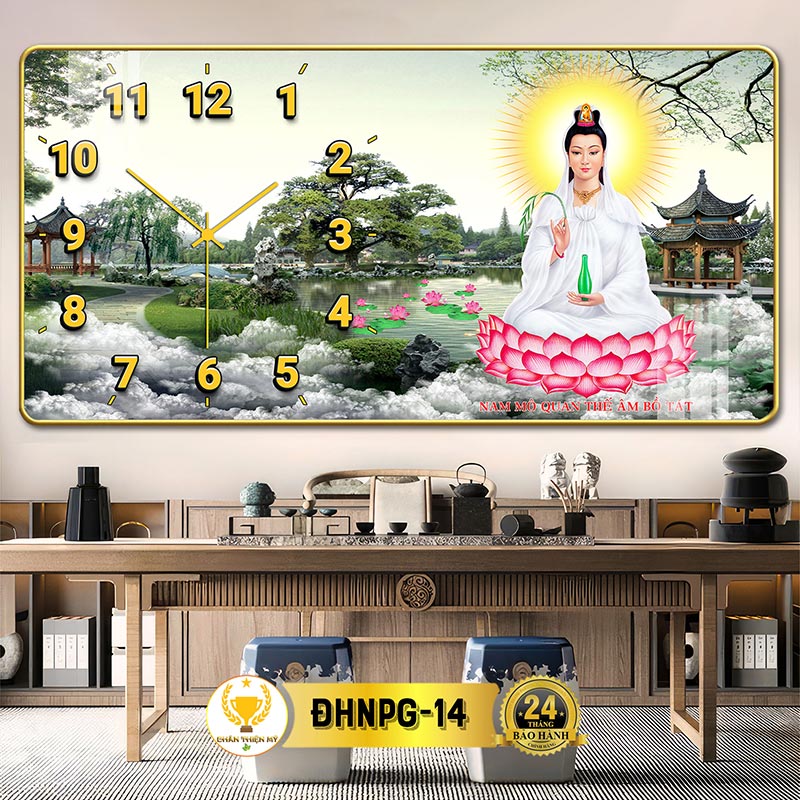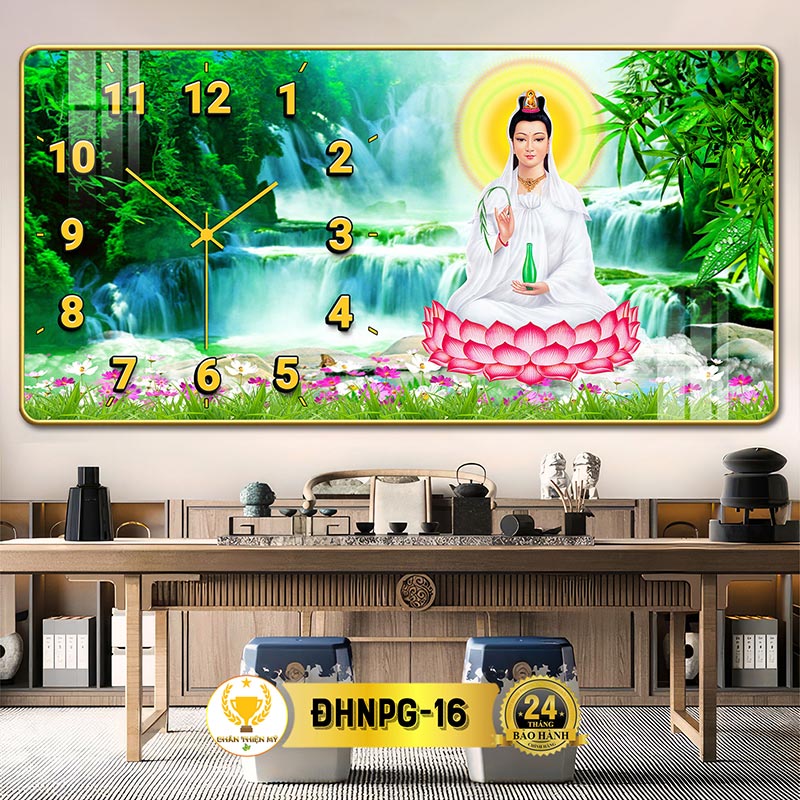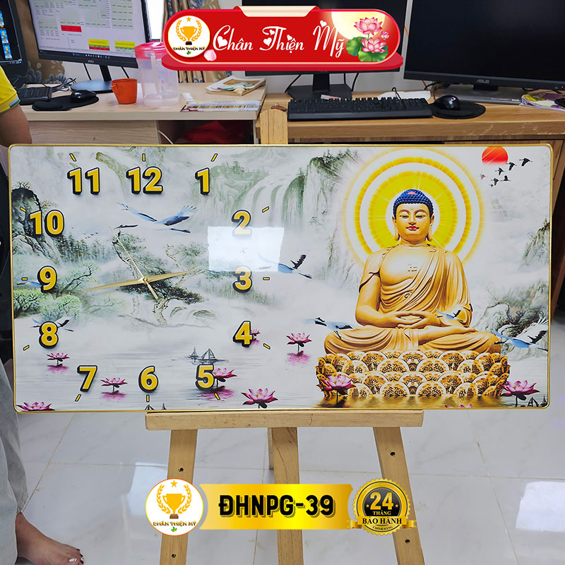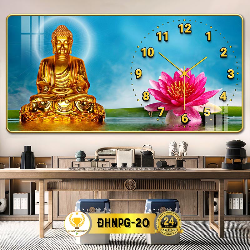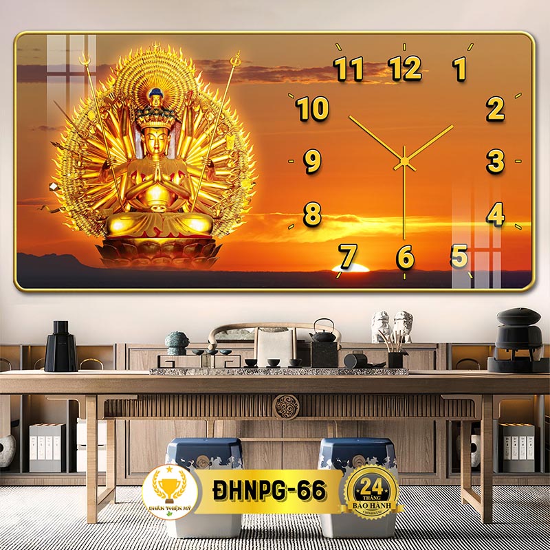 Đồng Hồ Tráng Gương Treo Tường Phật Giáo CHÂN THIỆN MỸ, Làm Quà Tặng Tân Gia, Decor Trang Trí Nhà Cửa CĐHNPG-02