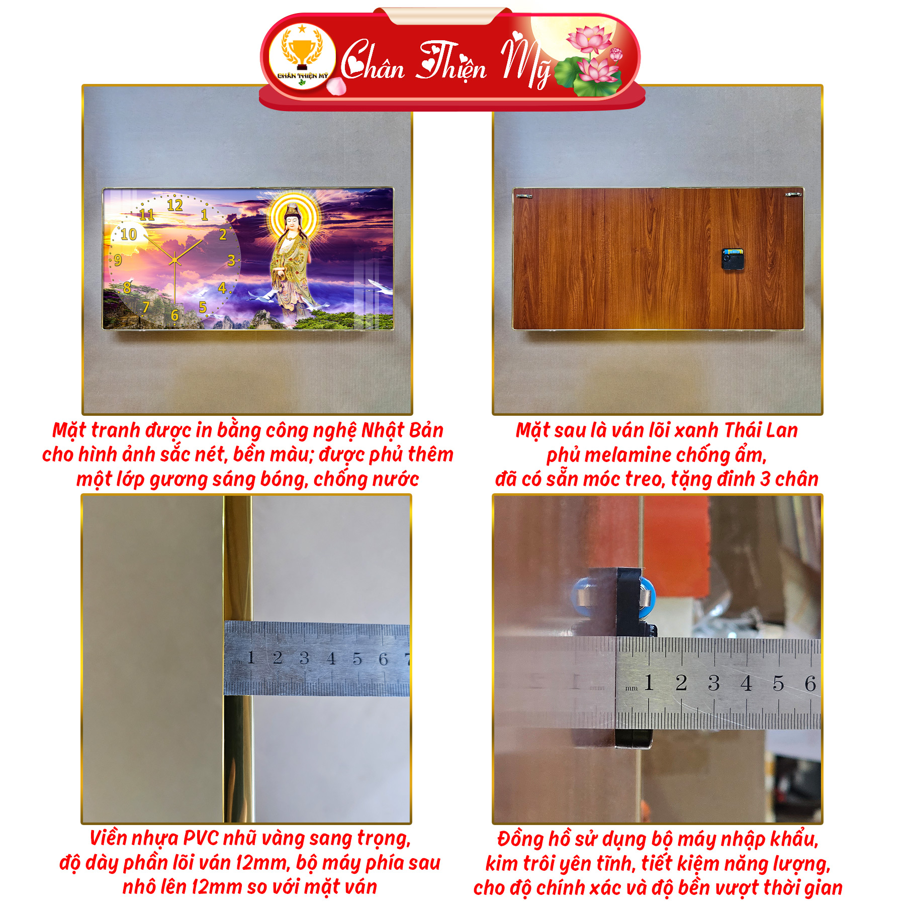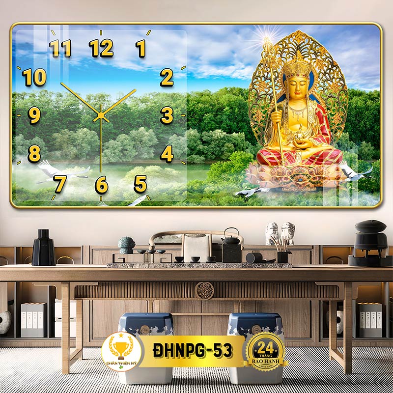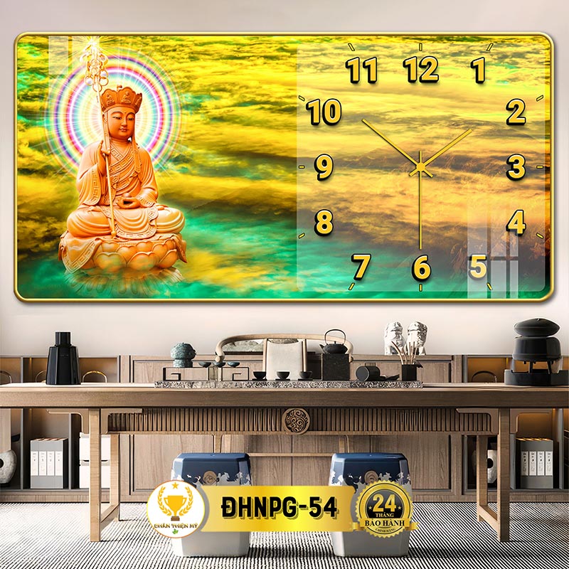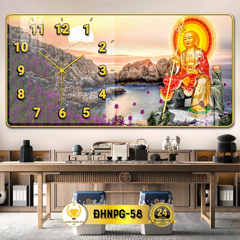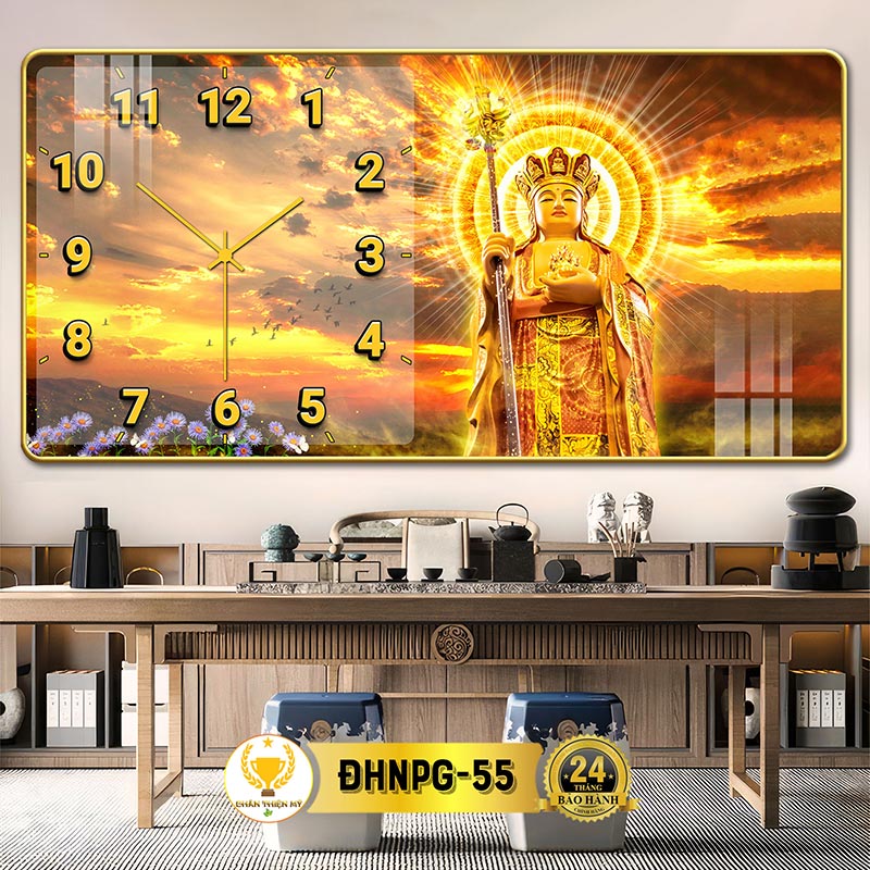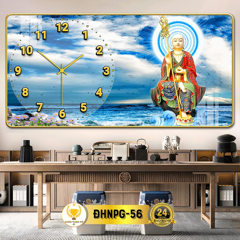 Đồng Hồ Treo Tường Trang Trí Phòng Địa Tạng Vương Bồ Tát CHÂN THIỆN MỸ, Quà Tặng Tân Gia, Kim Trôi Cao Cấp CĐHNPG-07