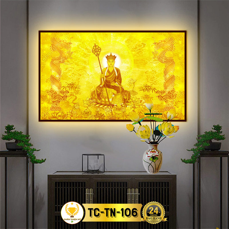 Hào Quang Phật Địa Tạng Vương Bồ Tát In Tranh Trúc Chỉ Ngang CHÂN THIỆN MỸ, Trang Trí Bàn Thờ, Treo Phòng Thờ TC-TN-106