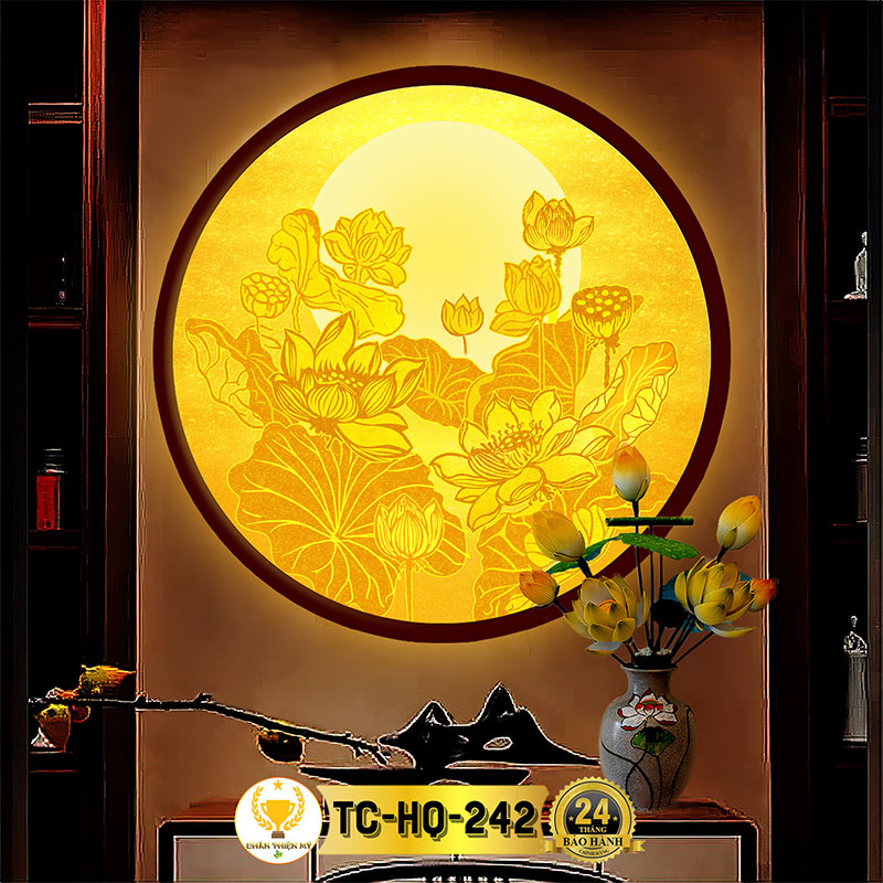 Hào Quang Phật Hoa Sen Mặt Trời In Tranh Trúc Chỉ CHÂN THIỆN MỸ, Trang Trí Bàn Thờ Gia Tiên, Treo Tượng Phật TC-HQ-242