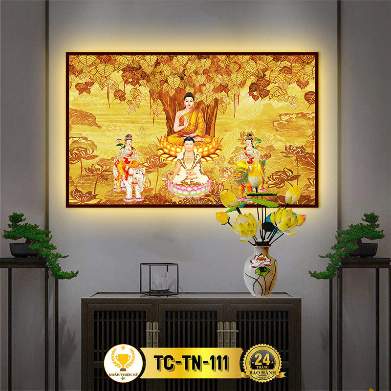 Hào Quang Phật Tây Phương Tam Thánh In Tranh Trúc Chỉ Ngang CHÂN THIỆN MỸ, Trang Trí Bàn Thờ, Treo Phòng Thờ TC-TN-111