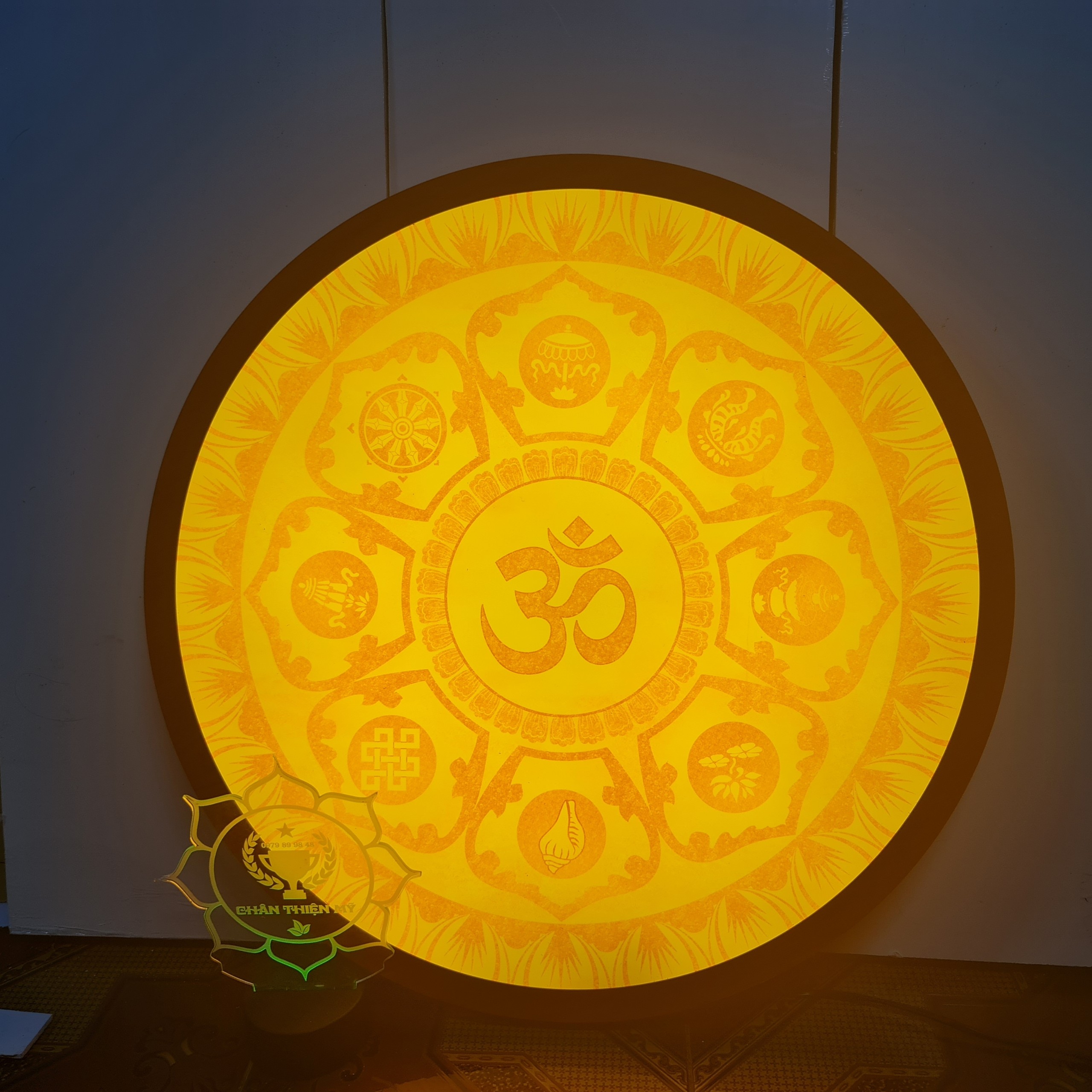 Chất liệu : khung composite vân gôc không cong vênh và bay màu theo thời gian , in trên chất liệu film dẫn sáng nhập khẩu từ hàn Quốc , Bề mặt phủ một lớp ánh kim , khi tắt điện ánh kim lấp lánh rất sang trọng