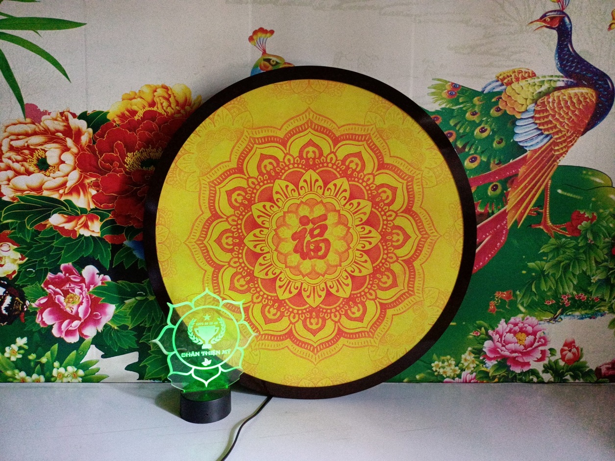 Chất liệu : khung composite vân gôc không cong vênh và bay màu theo thời gian , in trên chất liệu film dẫn sáng nhập khẩu từ hàn Quốc , Bề mặt phủ một lớp ánh kim , khi tắt điện ánh kim lấp lánh rất sang trọng