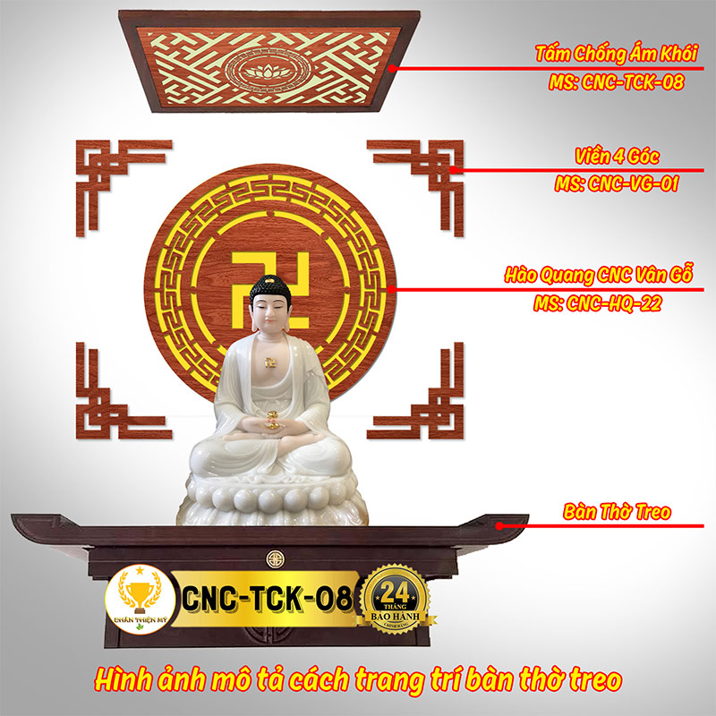 - Tấm chống ám khói CHÂN THIỆN MỸ là sản phẩm làm bằng gỗ được thiết kế đặc biệt dùng để lắp đặt phía trên trần bàn thờ - nơi đặt các bát hương, giúp chống khói ám lên trần nhà, đảm bảo tính thẩm mỹ cho gian thờ.