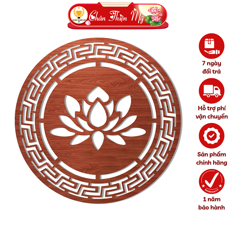 Tấm Ốp Tường Bàn Thờ Cắt CNC Họa Tiết Hoa Sen CHÂN THIỆN MỸ, Trang Trí Ban Thờ Gia Tiên, Treo Tượng Phật CNC-OP-03