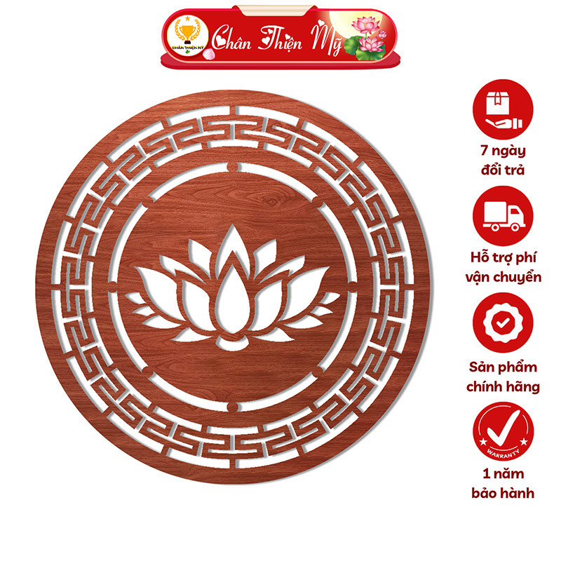 Tấm Ốp Tường Bàn Thờ Cắt CNC Họa Tiết Hoa Sen CHÂN THIỆN MỸ, Trang Trí Ban Thờ Phật, Treo Phòng Thờ CNC-OP-02