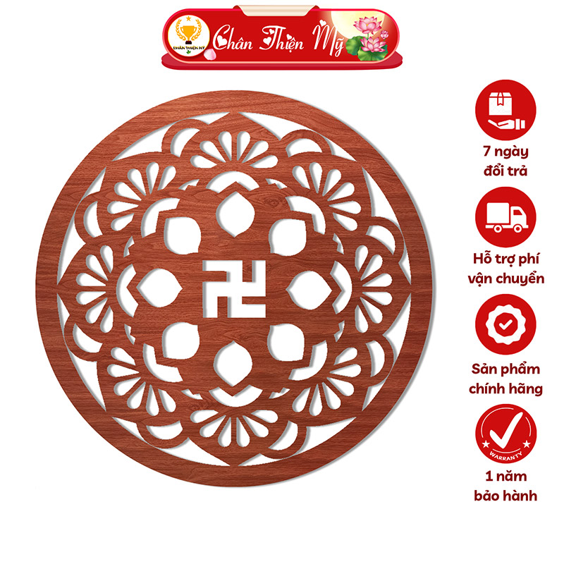 Tấm Ốp Tường Bàn Thờ Cắt CNC Họa Tiết Mandala Chữ Vạn CHÂN THIỆN MỸ, Trang Trí Ban Thờ Phật, Treo Phòng Thờ CNC-OP-01