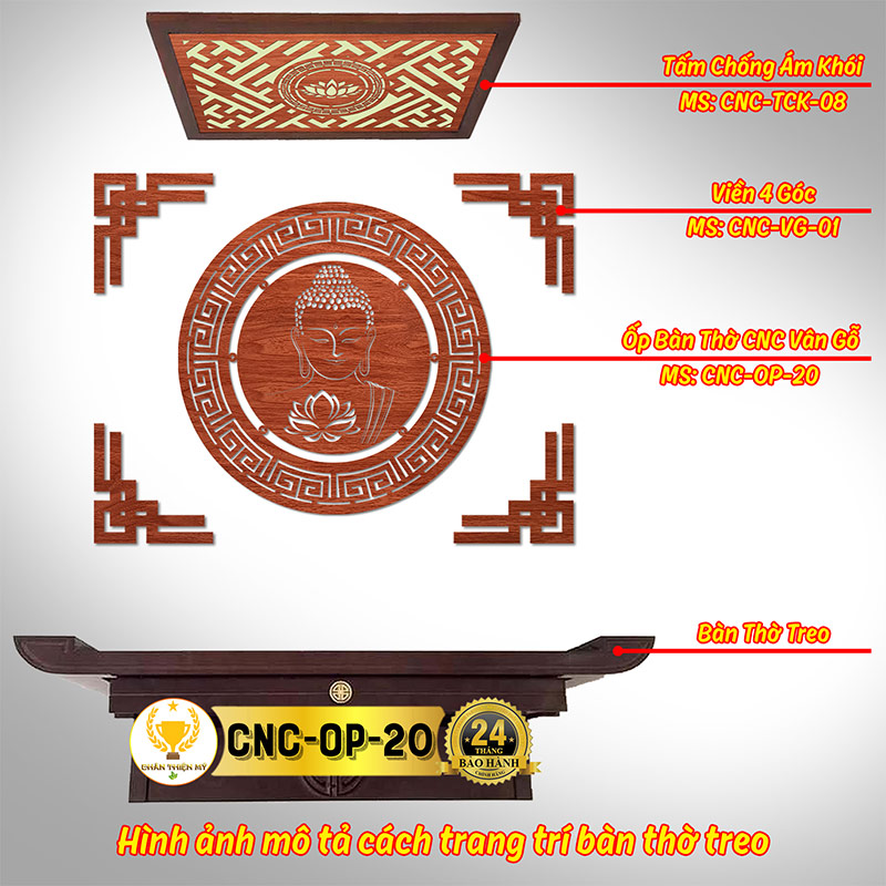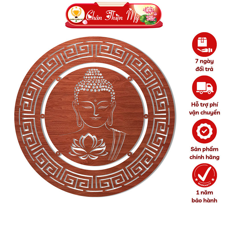 Tấm Ốp Tường Bàn Thờ Cắt CNC Họa Tiết Phật CHÂN THIỆN MỸ, Trang Trí Ban Thờ Phật, Treo Phòng Thờ CNC-OP-20