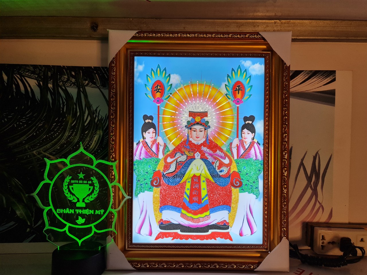 ✅ Tranh không bị lóa khi treo trước bóng điện, mà càng đẹp ánh lên màu kim sa tôn lên vẻ cao cấp và trang nghiêm