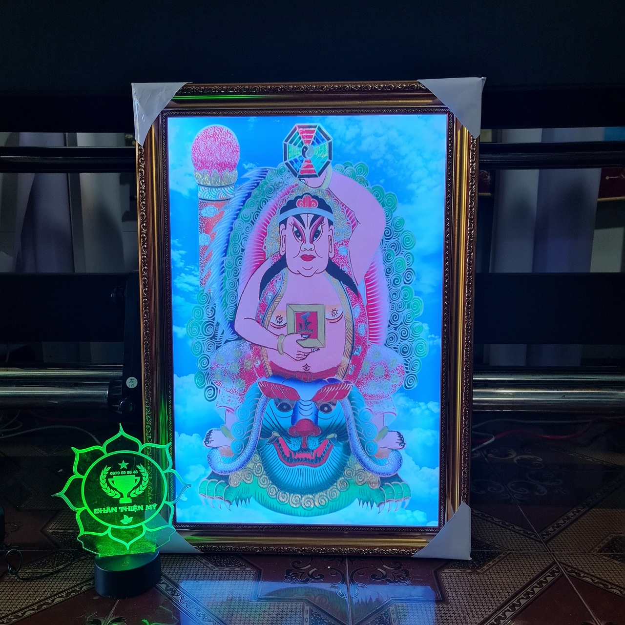 ✅ Tranh không bị lóa khi treo trước bóng điện, mà càng đẹp ánh lên màu kim sa tôn lên vẻ cao cấp và trang nghiêm