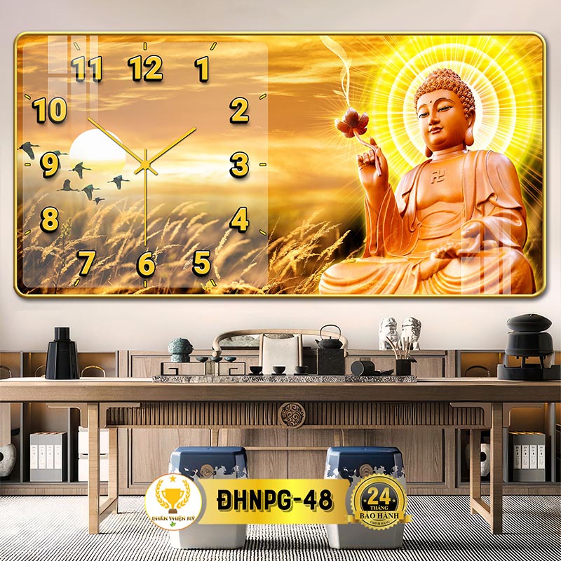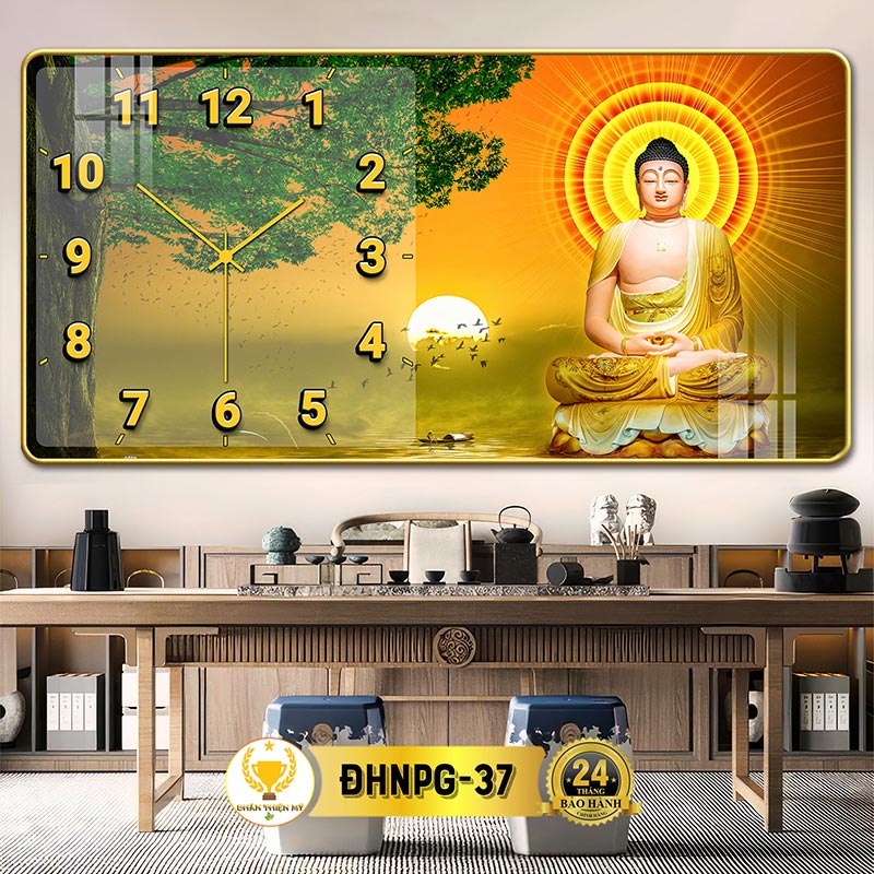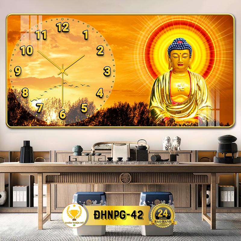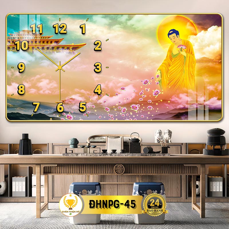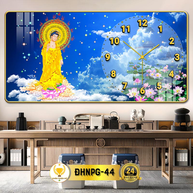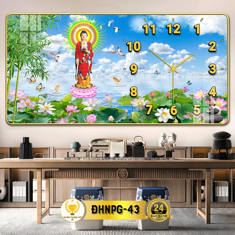 Tranh Đồng Hồ Tráng Gương Phật A Di Đà CHÂN THIỆN MỸ, Treo Tường Decor Làm Quà Tặng, Kim Trôi Không Tiếng Động CĐHNPG-05
